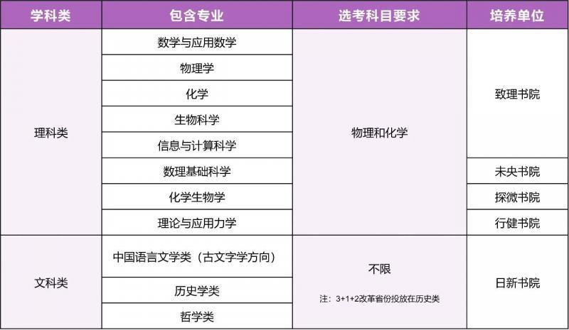 r各省(区、市)符合今年全国高考报名条件,志向远大、追求卓越、综合素质优秀或基础学科拔尖,并有志于将来从事相关领域科学研究工作的高中毕业生均可申请报名清华大学强基计划。招生专业分为三类:基础理科学术类专业旨在选拔并培养在基础理科领域有突出特长且有志于从事相关基础研究的学生,包括数学与应用数学、物理学、化学、生物科学、信息与计算科学专业;基础理科工程衔接类专业旨在选拔并培养在基础理科领域有特长且有志于从事高端芯片与软件、智能科技、新材料、先进制造和国家安全等关键领域研究的学生,包括数理基础科学、化学生物学、理论与应用力学专业;基础文科类专业旨在选拔并培养在基础文科领域有特长且有志于从事相关研究的学生,包括中国语言文学类(古文字学方向)、历史学类、哲学类专业。