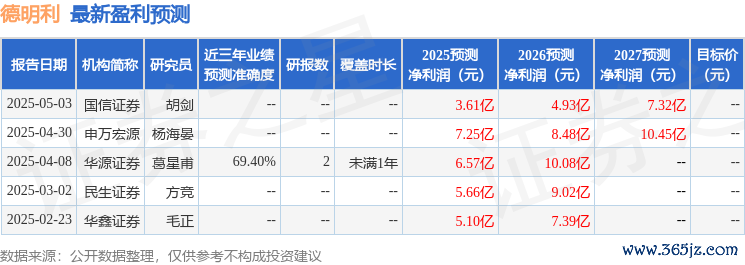 证券之星数据中心根据近三年发布的研报数据计算,华源证券葛星甫研究员团队对该股研究较为深入,近三年预测准确度均值为69.4%,其预测2025年度归属净利润为盈利6.57亿,根据现价换算的预测PE为31.65。