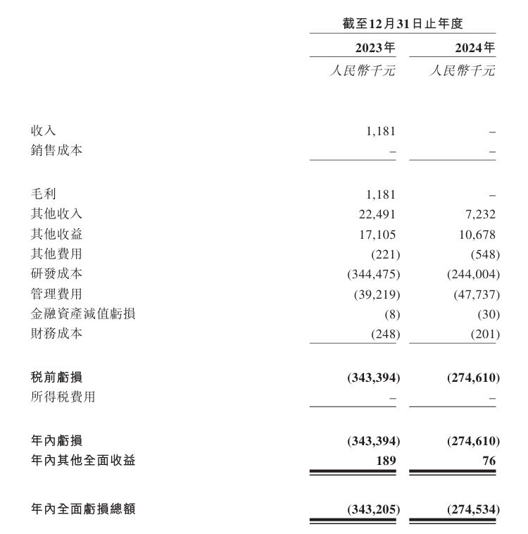 财务数据显示,于2023年、2024年,药捷安康收入分别约为118.1万元、0元人民币,相应期间年内亏损分别约为3.43亿元、2.75亿元人民币。